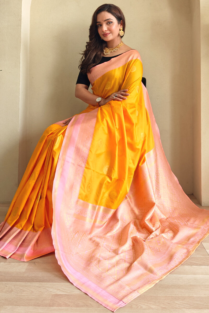 Blaze Orange Zari Woven Soft Banarasi Silk Saree