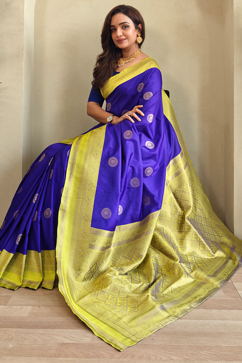 Bluish Purple Zari Woven Soft Banarasi Silk Saree
