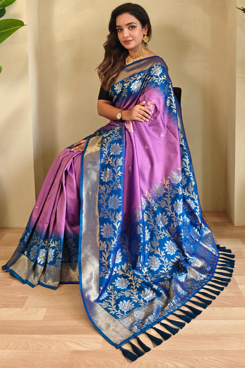Cadillac Pink Banarasi Silk Saree with Designer Chaap Border