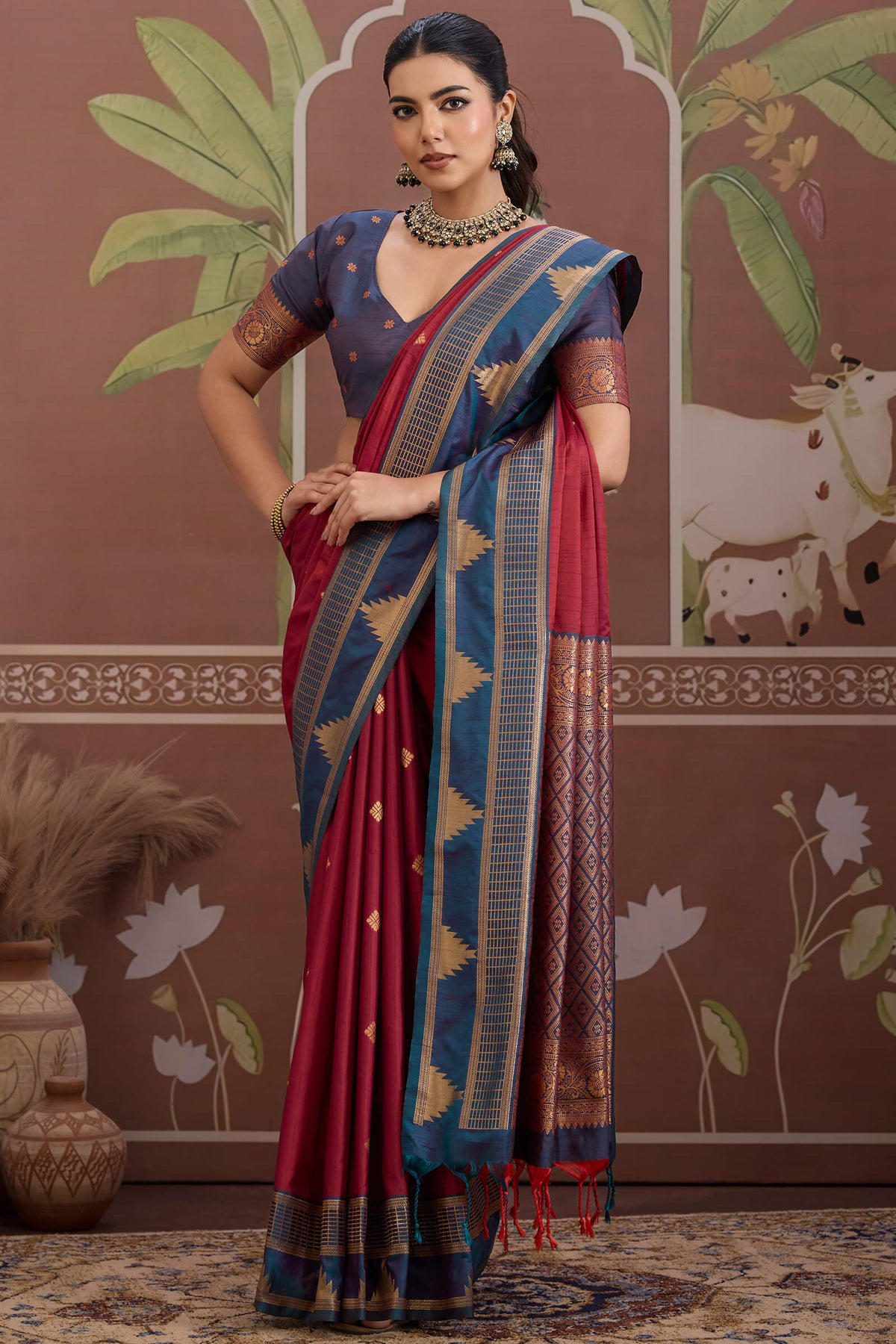 Ember Maroon Banarasi Tussar Silk Saree