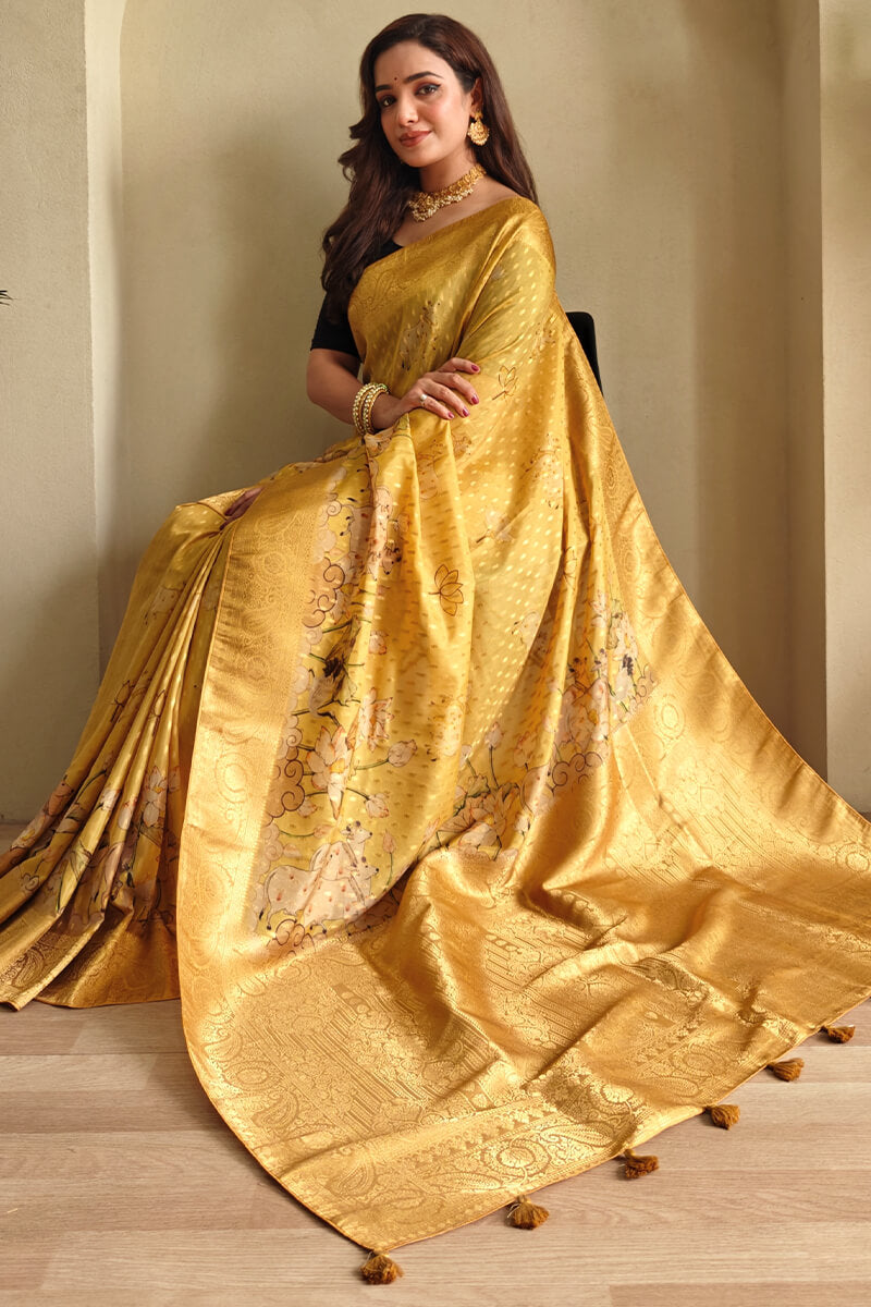 Indian Yellow Viscose Georgette Printed Banarasi Silk saree