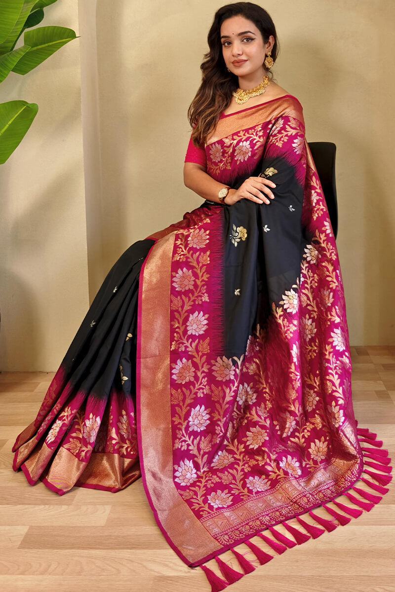 Oil Black Banarasi Silk Saree with Designer Chaap Border
