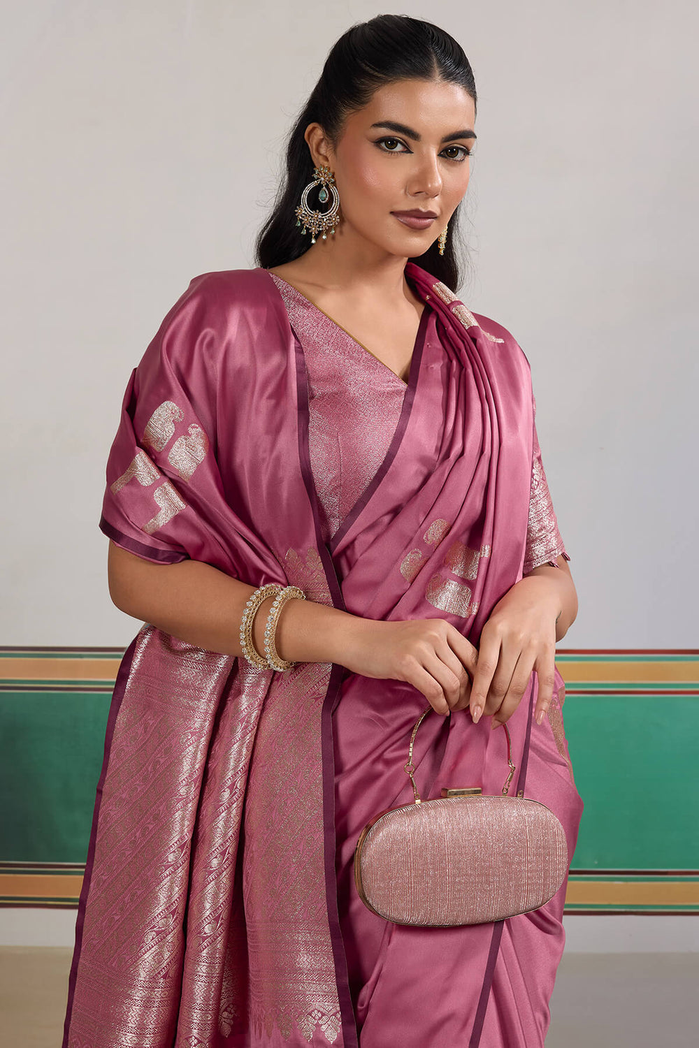 Old Rose Pink Banarasi Satin Silk Saree