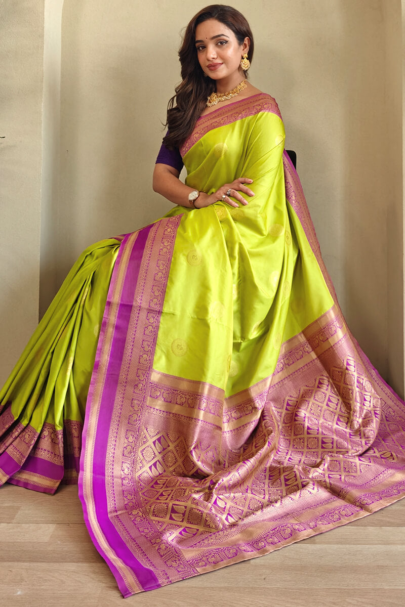 Slime Green Zari Woven Soft Banarasi Silk Saree