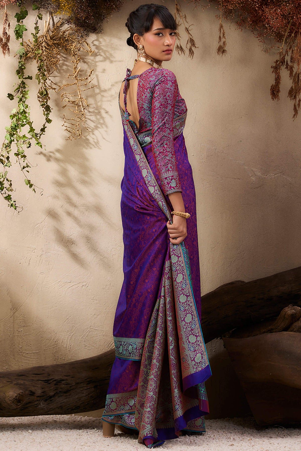 Coral Pink Zari woven Banarasi Tissue Silk Saree