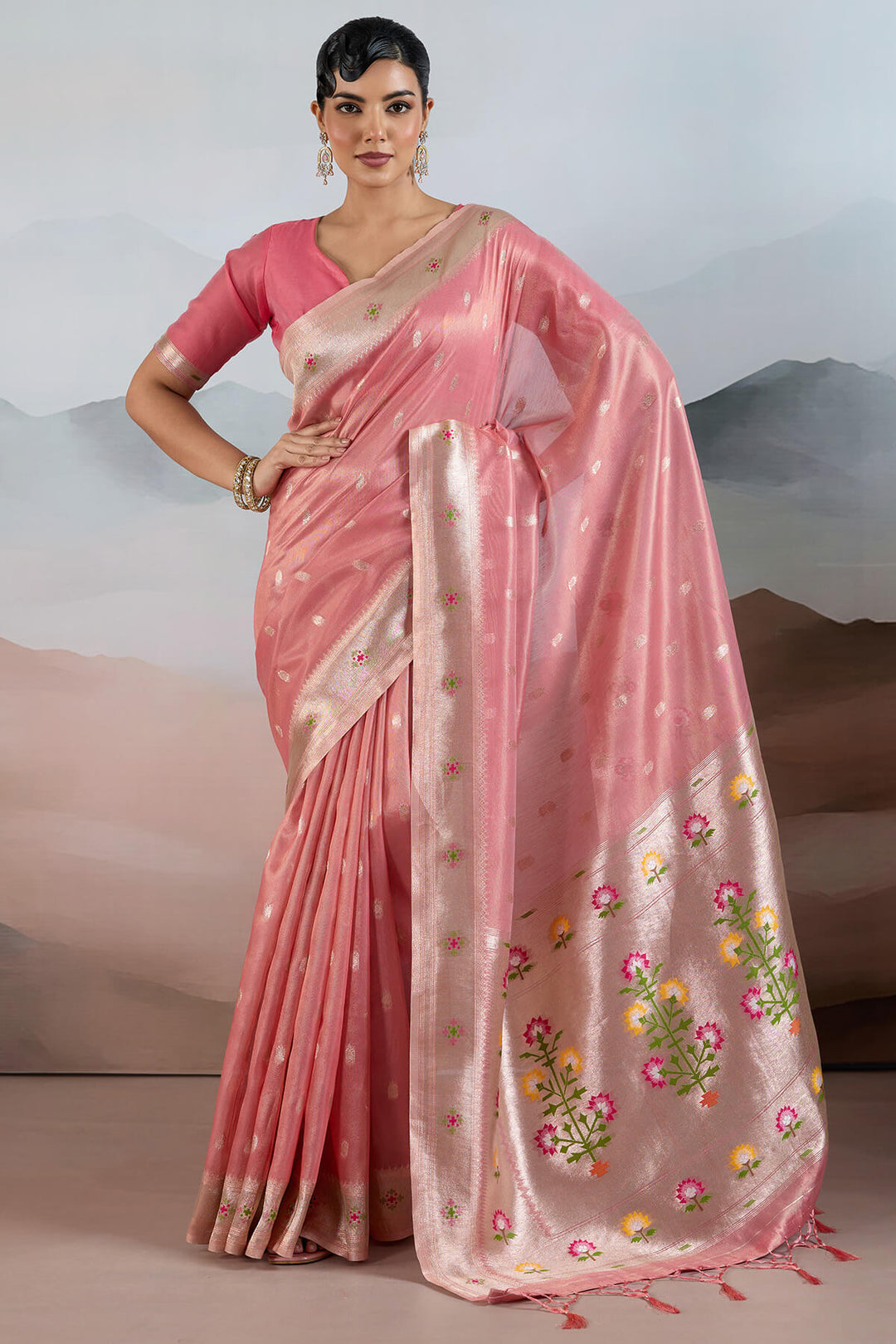 Lemonade Pink Zari Woven Paithani Silk Saree