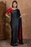Coral Black Stripe Ajrakh Printed Satin Silk Saree