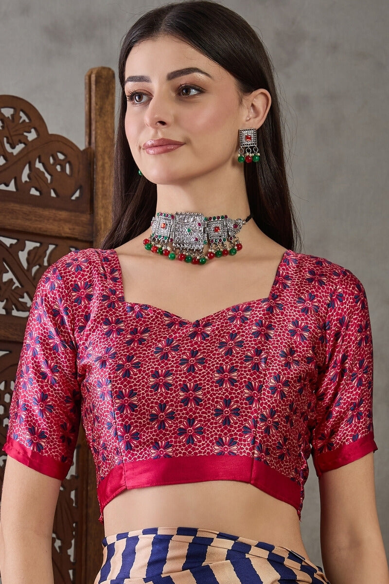 Iris Purple Stripe Ajrakh Printed Satin Silk Saree