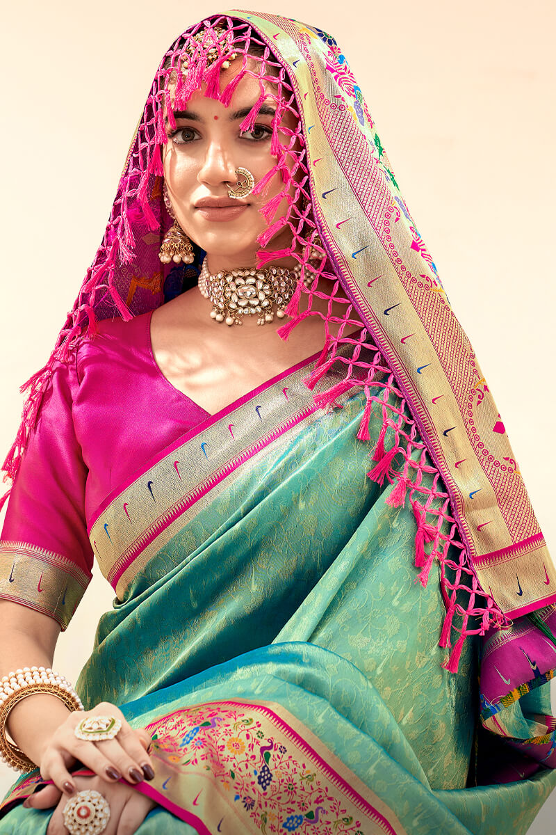 Summer Green Paithani Tissue Silk Saree