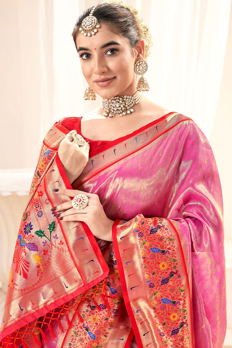 Thulian Pink Paithani Tissue Silk Saree