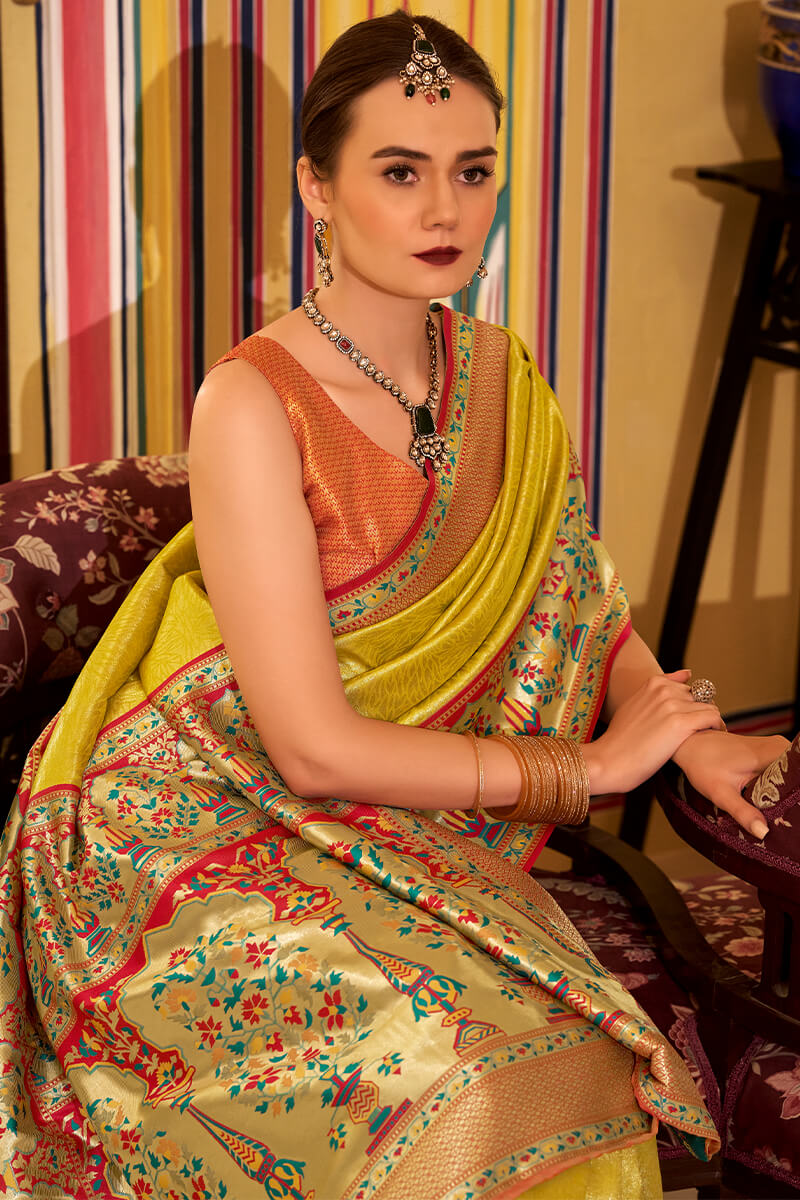 Dark Yellow Paithani Tissue Silk Saree