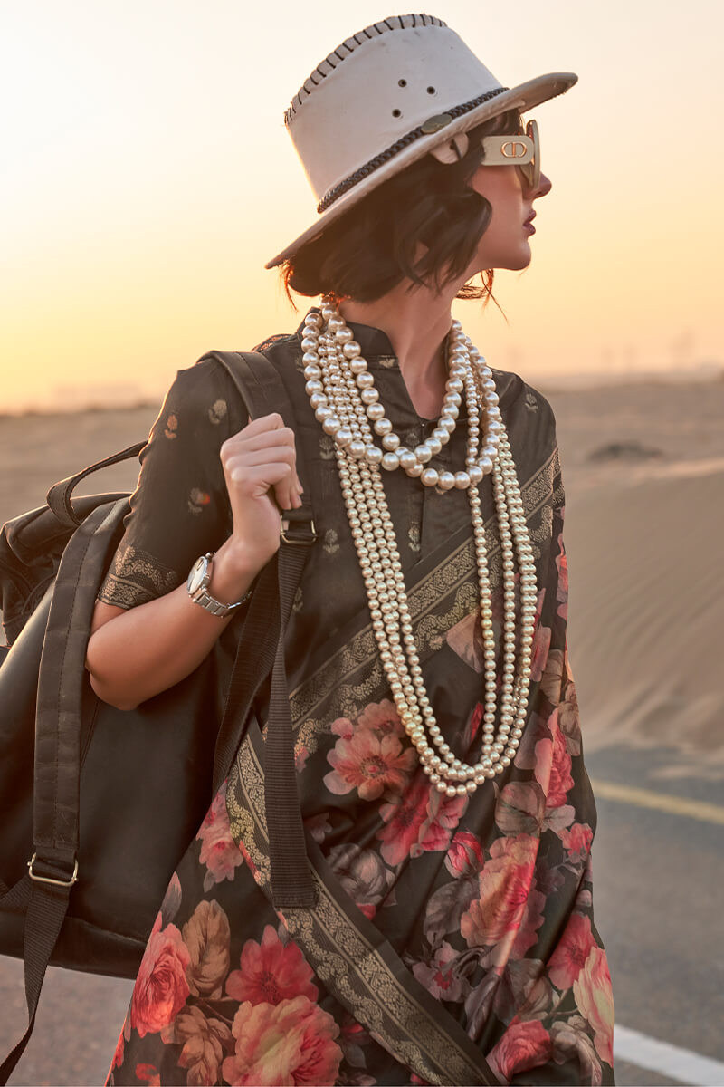 Make a bold style statement with our Irish Black Printed Tussar Silk Saree. The striking contrast of black against the soft silk fabric exudes an air of mystery and sophistication. Adorned with intricate prints inspired by Celtic motifs, this saree captures the essence of timeless beauty and modern elegance. Whether worn for a formal event or a casual gathering, this saree is sure to leave a lasting impression.