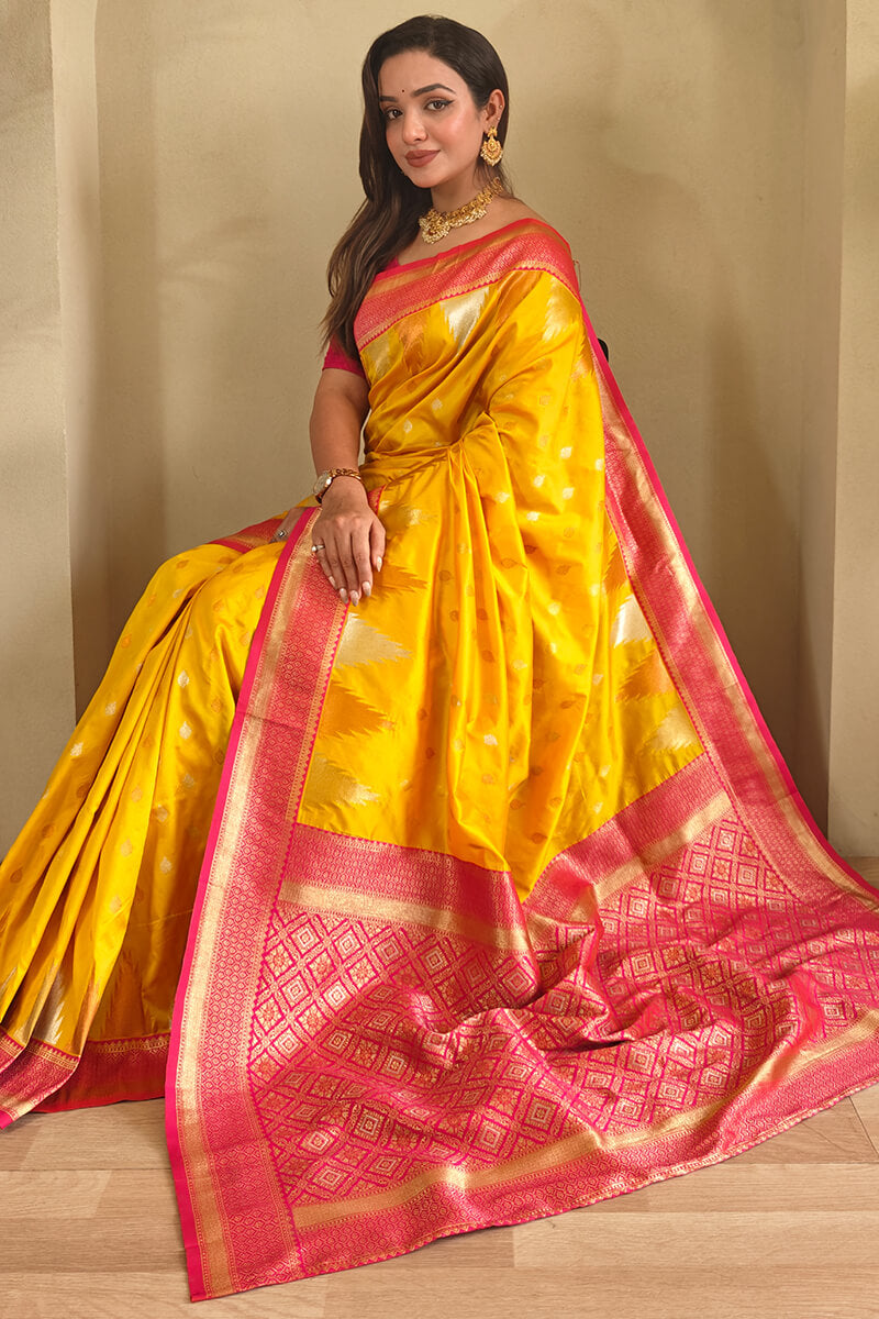 Mikado Yellow Zari Woven Banarasi Silk Saree