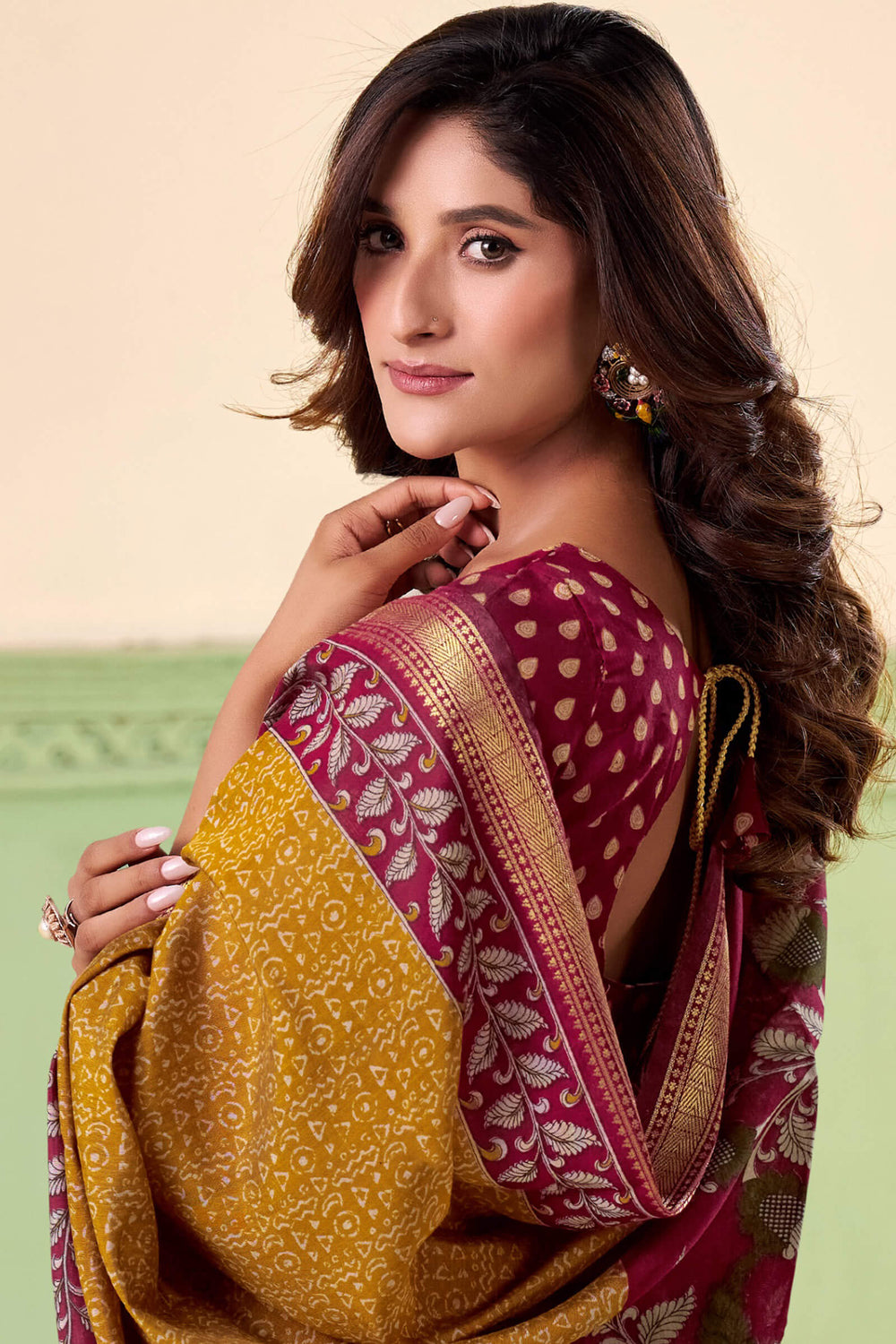 The intricate prints on these Cotton Silk Sarees bring personality and charm to your look. Paired with the smooth, flowing fabric, they offer a versatile wardrobe essential suitable for day or evening events.